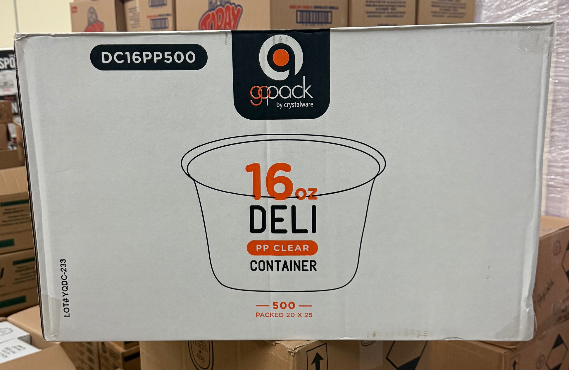 16oz Clear PP Deli Container Packed 25/Sleeve, 20Sleeves/case
